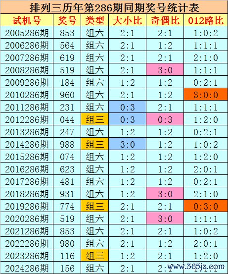 组选类型推选:历史上摆设三第286期同时奖号中,组六出现16期,组三出现4次,本年第286期瞻望奖号为组六号码。